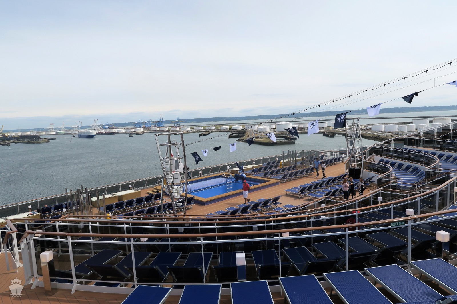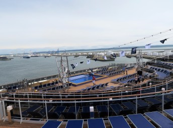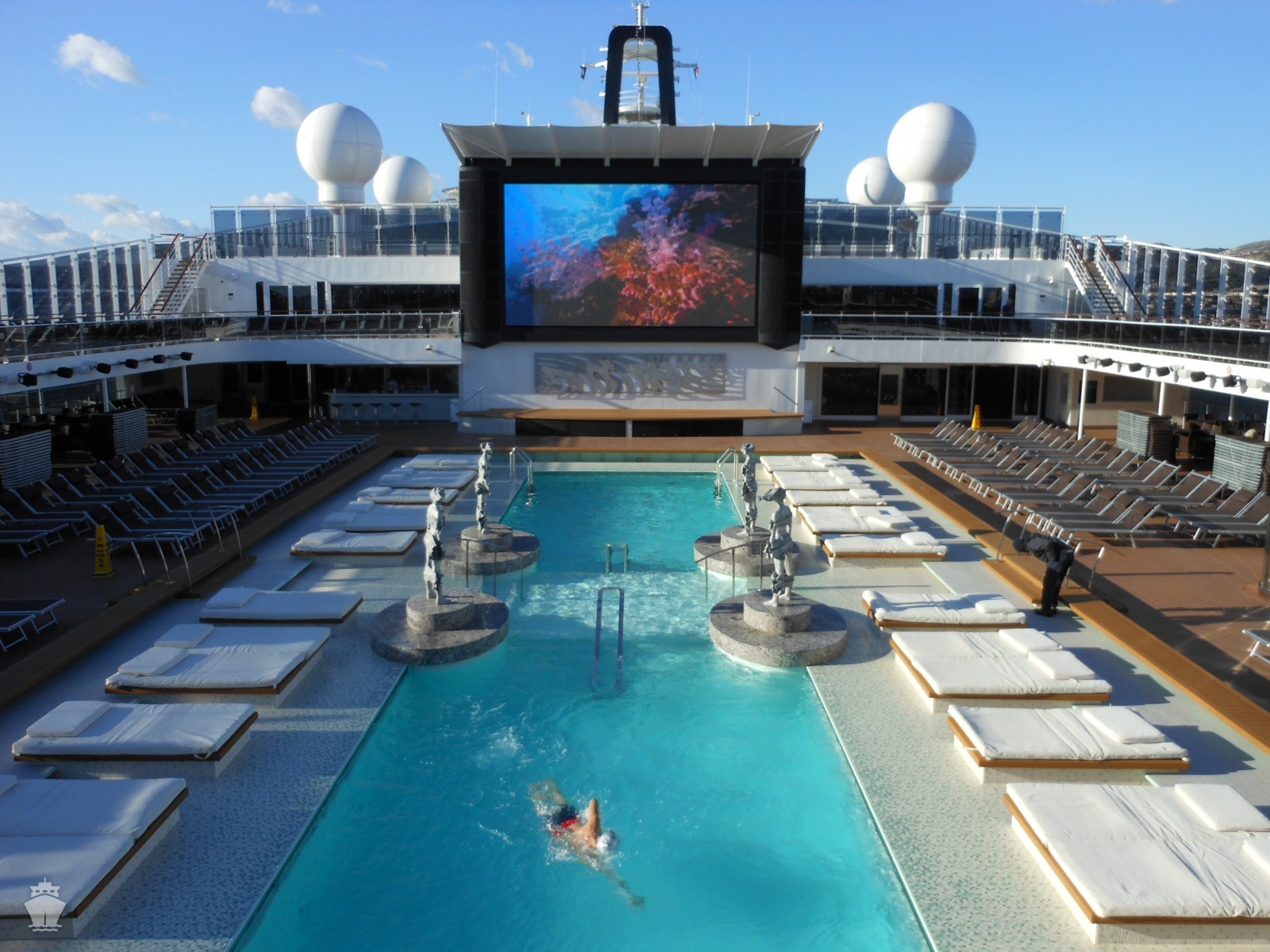 - sportovní aktivity na otevřených palubách (jogging, basketbal, fotbal, tenis), bazény a lehátka