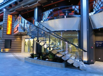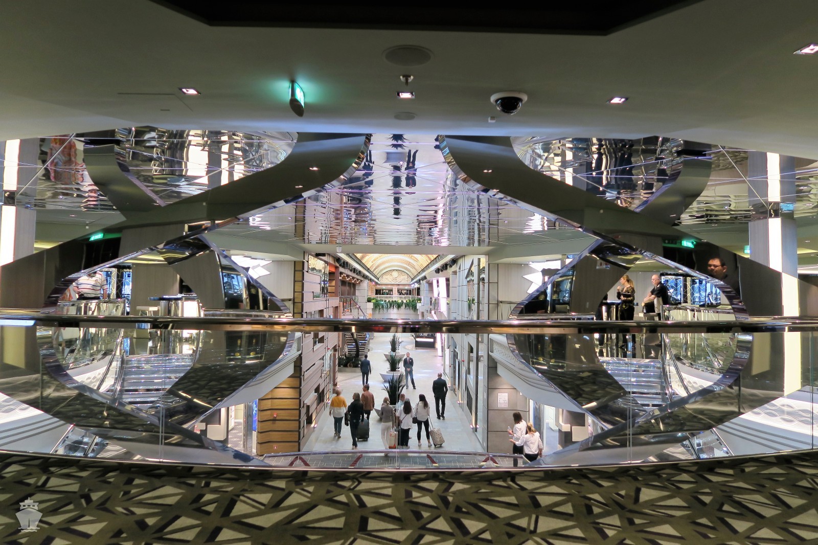 - centrální promenádní galerie s obchody a butiky, zaklenutá obří LED obrazovkou
