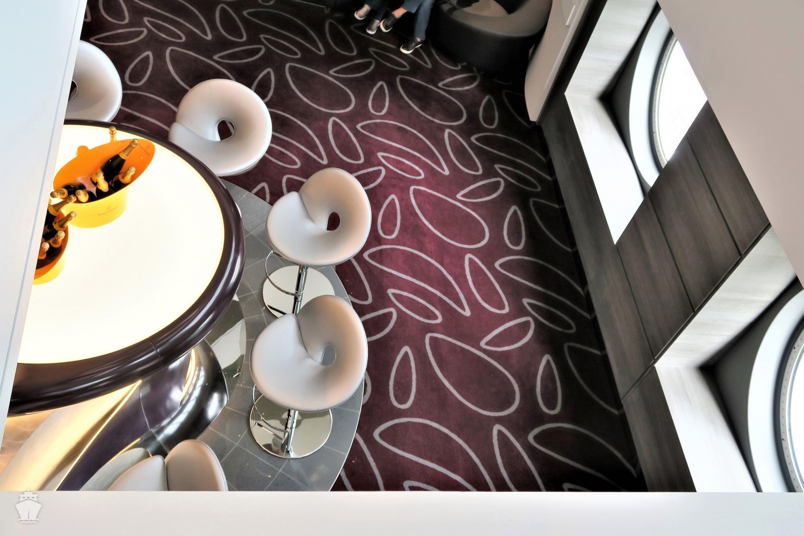 Mezonetové Duplex suite: cca 52m², luxusní prostorná kajuta na 2 podlažích, 2 koupelny, manželská postel (na požádání 2 oddělené postele), další 2 poslete v patře, toaletní stolek, prostorná skříň, interaktivní TV, 2 telefony, sejf, vysoušeč vlasů. Velký balkon s vířivkou.