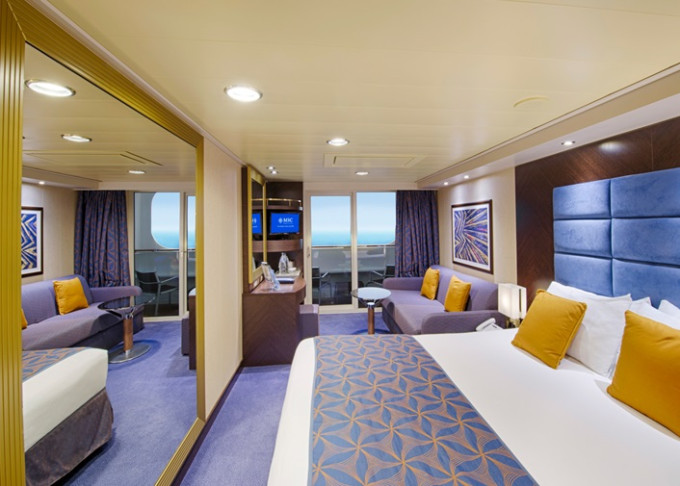 Kajuta s balkónem: 17 - 42 m², kajuta s manželskou postelí (na požádání 2 oddělené postele) a rozkládací pohovka. Klimatizace, koupelna se sprchou nebo vanou a WC, toaletní stolek, prostorná skříň, interaktivní TV, telefon, sejf, vysoušeč vlasů. Balkony se stolkem a židlemi. Některé kajuty mají omezený výhled.
