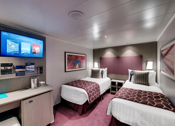 - ubytování v plně vybavené kajutě: vlastní koupelna se sprchou a WC, interaktivní TV, telefon, trezor, vysoušeč vlasů, regulovatelná klimatizace, minibar (za poplatek), Wi-fi (za poplatek)