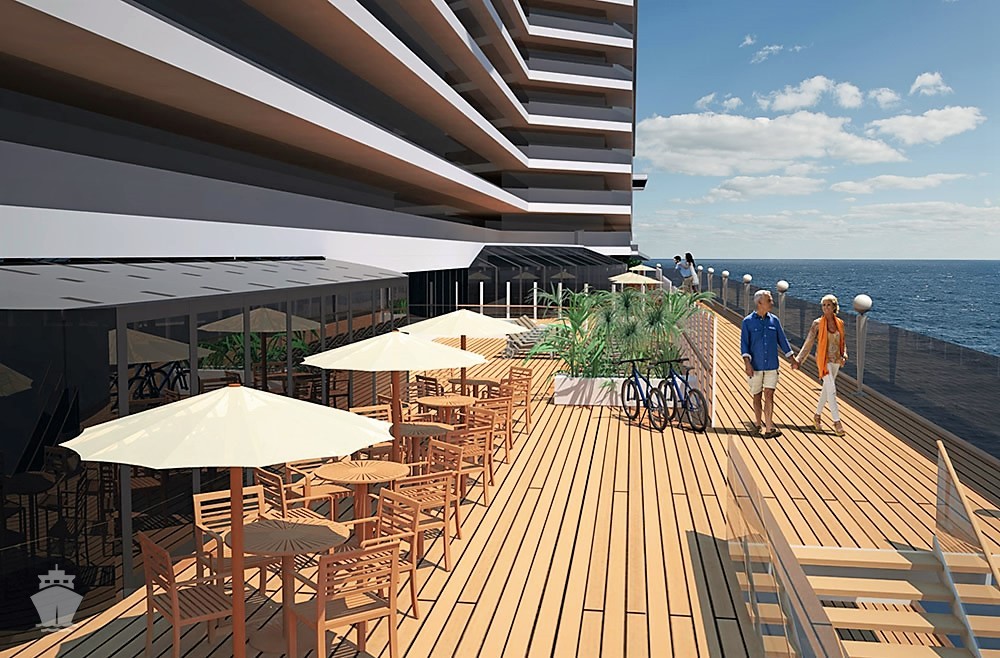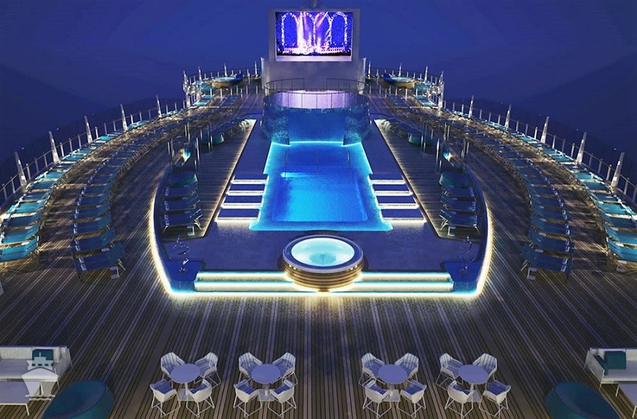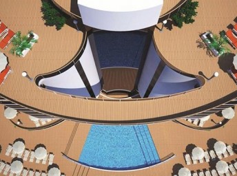 - sportovní aktivity na otevřených palubách (jogging, basketbal, fotbal, tenis), bazény a lehátka