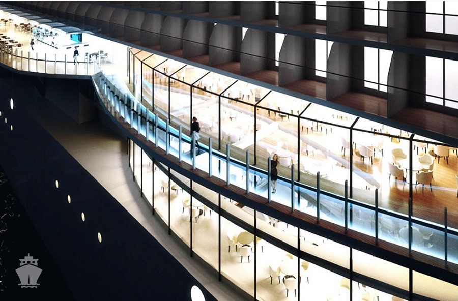 - promenáda kolem celé lodi zahrnující i průhlednou podlahu