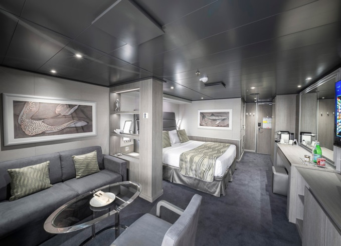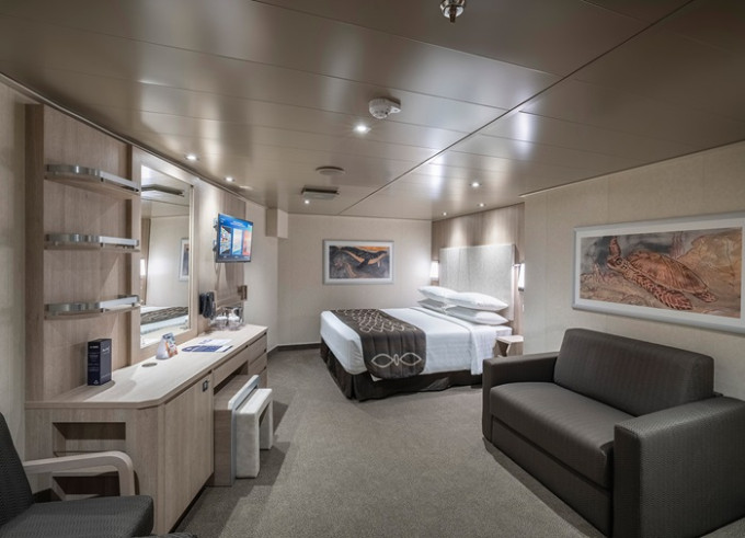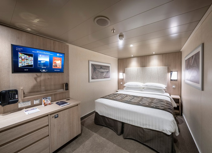 Kajuta vnitřní: 14 - 16 m²; 28 m², kajuta s manželskou postelí (na požádání 2 oddělené postele) a 1-2 vyklápěcí horní lůžka. Klimatizace, koupelna se sprchou a WC, toaletní stolek, skříň, interaktivní TV, sejf, telefon, vysoušeč vlasů, virtuální asistentka ZOE.