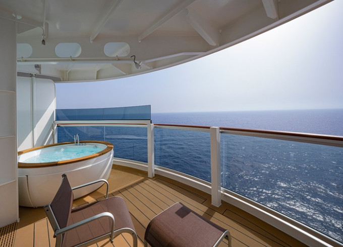 Kajuta s balkónem: 16 -17 m², kajuta s manželskou postelí (na požádání 2 oddělené postele) a rozkládací pohovka. Klimatizace, koupelna se sprchou nebo vanou a WC, toaletní stolek, prostorná skříň, interaktivní TV, telefon, sejf, vysoušeč vlasů, virtuální asistentka ZOE. Balkony se stolkem a židlemi. Některé kajuty mají omezený výhled.