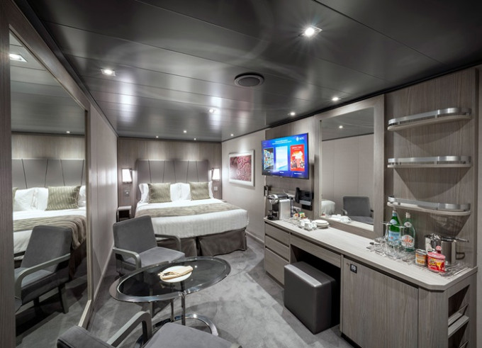 - ubytování v plně vybavené kajutě: vlastní koupelna se sprchou a WC, interaktivní TV, telefon, trezor, vysoušeč vlasů, regulovatelná klimatizace, minibar (za poplatek), Wi-fi (za poplatek)