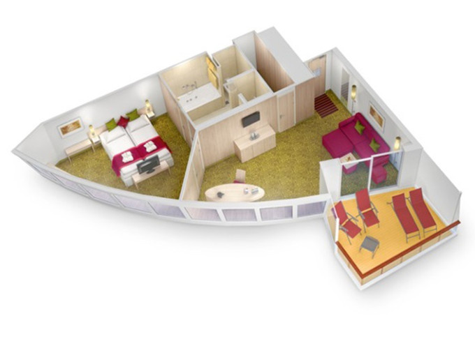 BP - Kajuta s balkonem Panorama PREMIUM od 21 m² / balkon od 4,5 m². Cenový model Premium. Max 3 osoby. 77 552 Kč 38 776 Kč za osobu