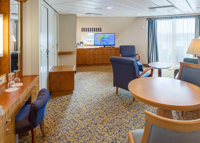 | GS - Grand Suite s balkonem 27 m² / balkon 10 m². Výhody Royal Suite Class. 10. paluba. Max 4 osoby. | 117 250 Kč 117 250 Kč za osobu | ||
