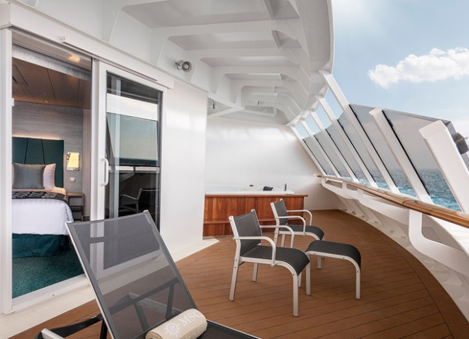 | YC3 - Yacht Club Royal Suite 58 m² + balkon s vířivkou 70 m². Oddělený obývací pokoj a ložnice, šatník, koupelna s vanou. 15. paluba. Cenový model MSC Yacht Club. | 358 409 Kč 119 470 Kč za osobu |