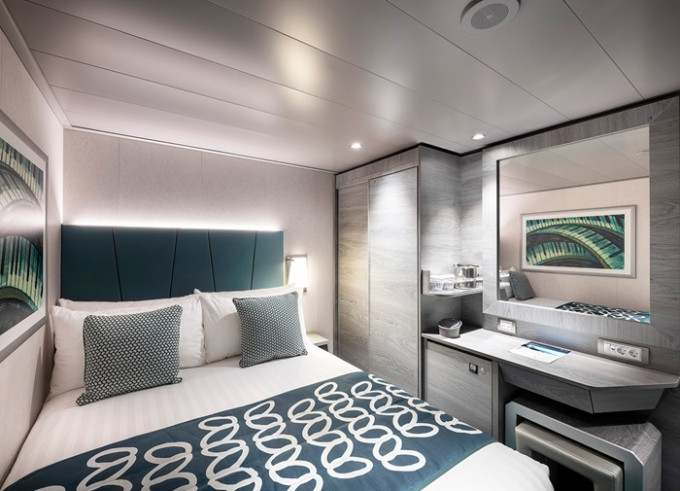 Kajuta vnitřní: 17 m², kajuta s manželskou postelí (na požádání 2 oddělené postele) a 1-2 vyklápěcí horní lůžka. Klimatizace, koupelna se sprchou a WC, toaletní stolek, skříň, interaktivní TV, sejf, telefon, vysoušeč vlasů, virtuální asistentka ZOE.