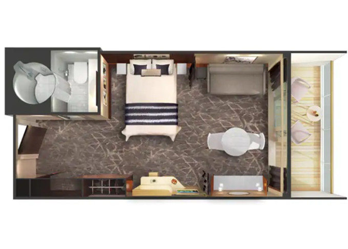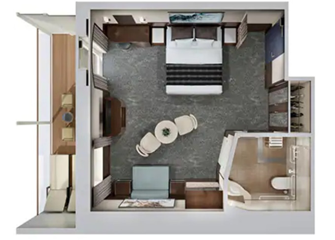 | SE - Forward-facing Penthouse 52 m² / balkon 18-22 m². Výhody Suite. 8/9. paluba - vpředu. Max 3-5 osob. | 278 738 Kč 139 369 Kč za osobu | ||