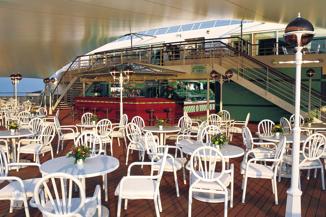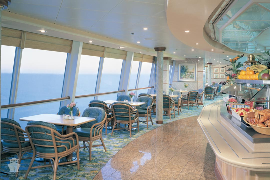- Spinnaker Lounge – multifunkční salonek s výhledem na moře, ideální pro denní relax i noční tanec.