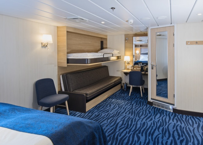 | Q3 - Expedition Mini Suite 16-17 m². Neotevíratelné okno. Tv, kávovar, varná konvice, minibar. Max 3 osoby. | 467 655 Kč 233 828 Kč za osobu | ||