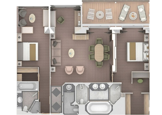 | O2 - Owner's Suite 2 119 - 129 m² (včetně velké verandy). 2 ložnice, obývací část, jídelní část. | 1 989 917 Kč 994 958 Kč za osobu |