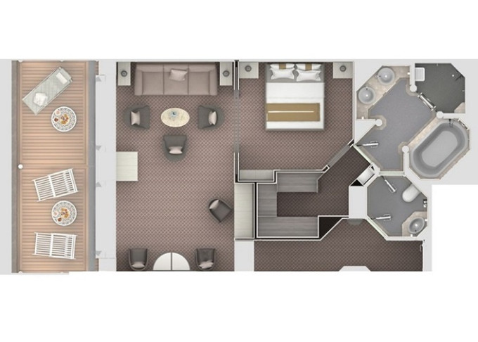 | SV - Superior Veranda Suite 36 m² / balkon 6 m². Vyšší paluby. Ložnice s obývací částí. | 553 586 Kč 553 586 Kč za osobu | ||