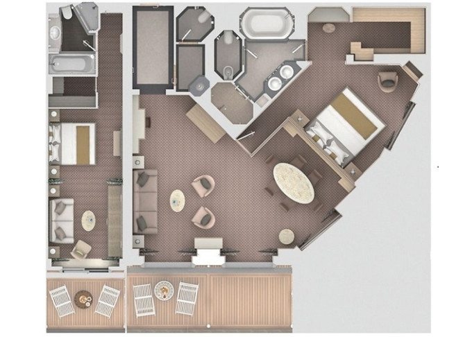| R2 - Royal Suite 2 142 m² (včetně balkona). 2 ložnice, obývací a jídelní část. | 1 795 414 Kč 897 707 Kč za osobu |