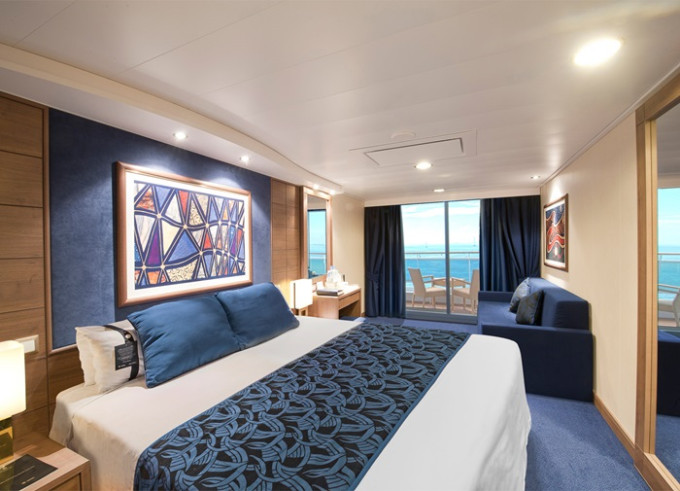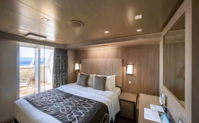 Kajuta s balkónem: 17-23 m², kajuta s manželskou postelí (na požádání 2 oddělené postele) a rozkládací pohovka. Klimatizace, koupelna se sprchou nebo vanou a WC, toaletní stolek, prostorná skříň, interaktivní TV, telefon, minibar, sejf, vysoušeč vlasů. Balkony se stolkem a židlemi.