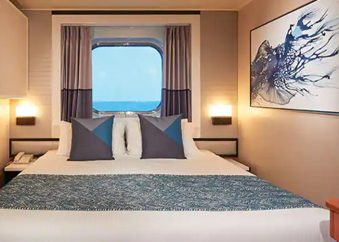 Kajuta s oknem: cca 13 - 15 m²; varianta s omezeným výhledem; bez možnosti otevírat.