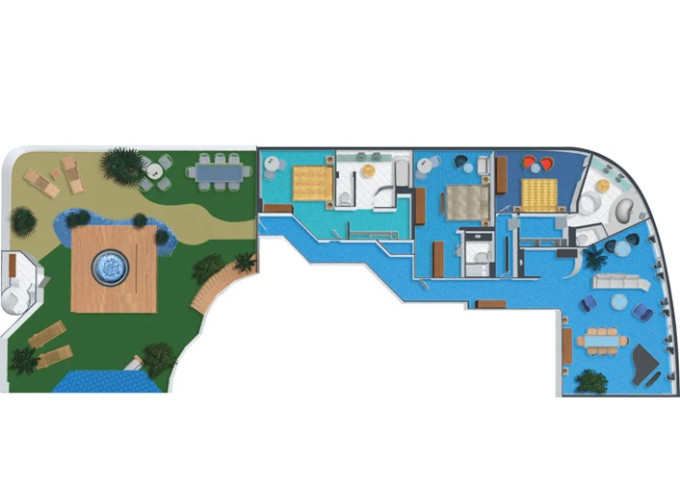 S1 - Garden Villa - 3 ložnice 622 m² / balkon 414 m². Vířivka. Výhody Suite. 14. paluba - střed. Max 7 osob. 338 884 Kč 169 442 Kč za osobu