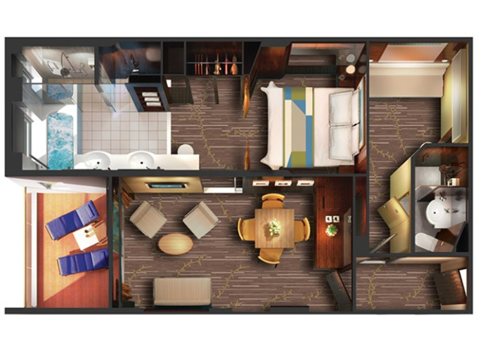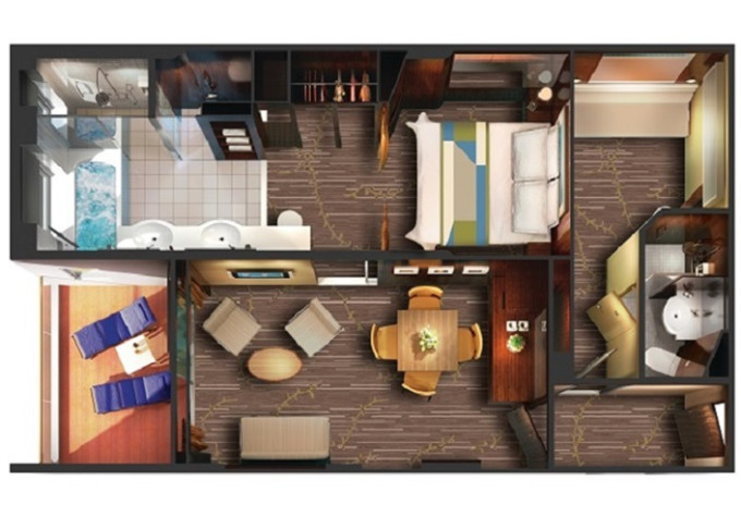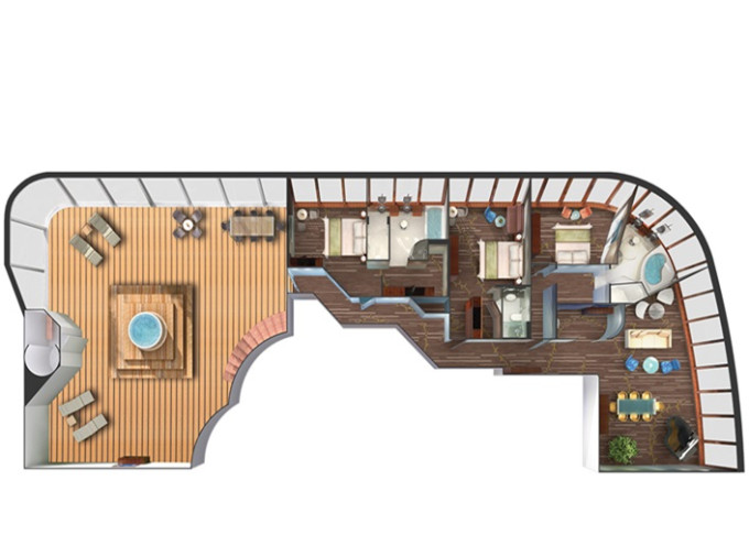 S1 - Garden Villa - 3 ložnice 622 m² / balkon s vířivkou 414 m². Výhody Suite. 14. paluba - střed. Max 7 osob. 462 269 Kč 231 135 Kč za osobu