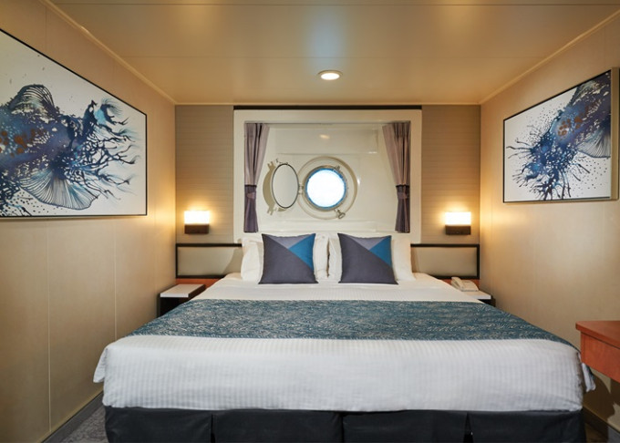 Kajuta s oknem: cca 13 - 15 m²; varianta s omezeným výhledem, s malým oknem, s velkým oknem; okna nelze otevírat.
