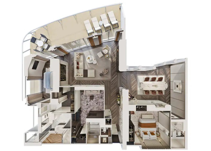 H2 - The Haven Deluxe Owner's Suite 136 m² / balkon 45 m². Výhody The Haven. 18. paluba vpředu. Max 6 osob. 223 280 Kč 111 640 Kč za osobu