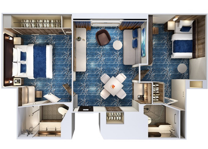 HH - The Haven Family Villa Suite 47 m² / balkon 8 m². Výhody The Haven. 15. paluba - vpředu. Max 5 osob. 75 158 Kč 37 579 Kč za osobu