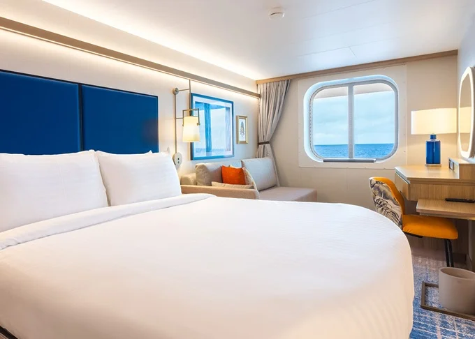 | L5 - Kajuta s oknem Panoramic Ocean View 24 m². Celoplošní neotevíratelné okno, výhled na moře. 14. paluba vpředu. Max 3 osoby. | 182 750 Kč 60 917 Kč za osobu | ||