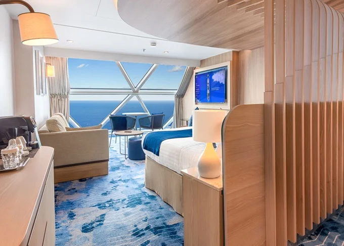 | VP - Panoramic Suite 38-41 m². Celoplošné panoramatické neotevíratelné okno s výhledem na moře. 16, 17. paluba vpředu. Max 4 osoby. Výhody Suite Sky Class. | 272 811 Kč 136 405 Kč za osobu |