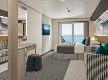 SI -Suite na zádi s velkým balkónem 24 m² / balkón 19 m². 9. paluba vzadu. Max 2 osoby. Výhody Suite. 276 943 Kč 138 471 Kč za osobu