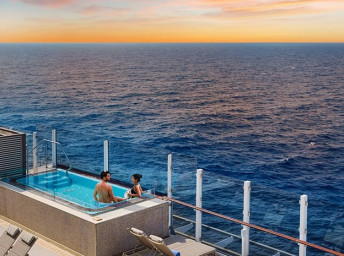 HB - Apartmá The Haven Aft-Facing Penthouse s balkónom 27-35 m² / balkón 12-20 m². 10. - 14. paluba vzadu. Max 4 osoby. Výhody The Haven. 489 450 Kč 244 725 Kč za osobu