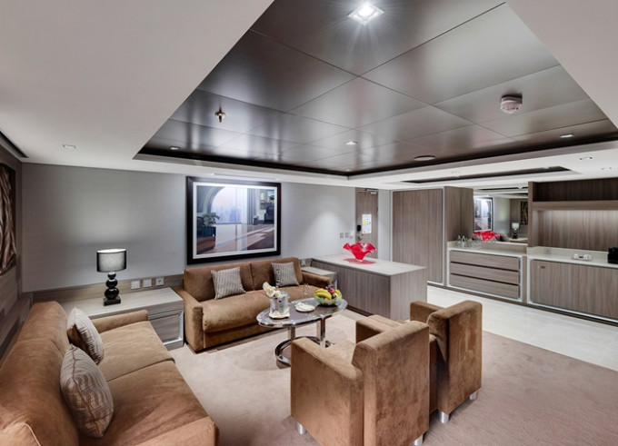 | YC3 - Yacht Club Royal Suite 62 m² + balkon 33 m² s vířivkou. Oddělený obývací pokoj a ložnice, koupelna s vanou, šatník. 16. paluba. Cenový model MSC Yacht Club. | 252 106 Kč 252 106 Kč za osobu | ||