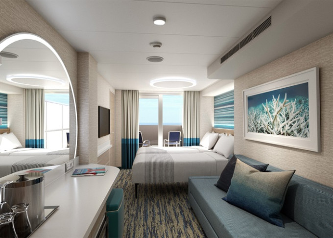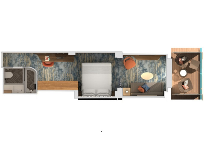 7C - Kajuta s balkónem Cove 19 m². Balkón s chráněným výhledem 4 m². 61 393 Kč 30 697 Kč za osobu