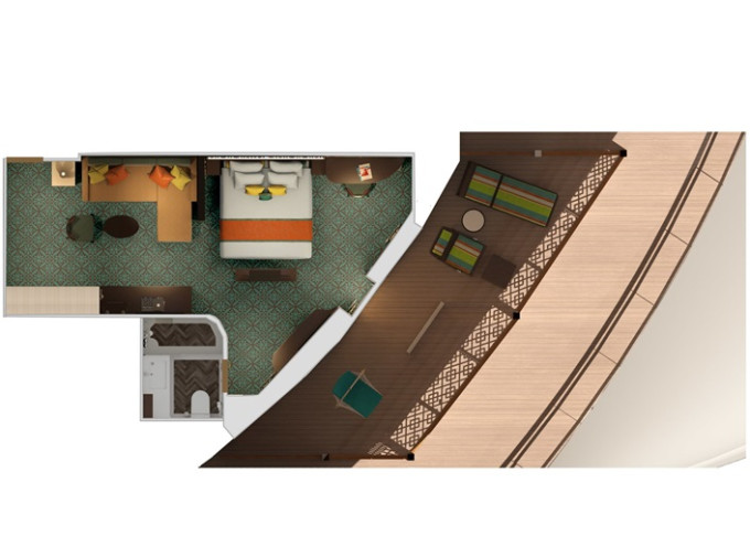 HG - Kajuta Havana Cabana s větším patiom 19 m² / vnější patio 9 m². Tropický styl, vstup do exkluzivní zóny Havana. 74 809 Kč 37 404 Kč za osobu