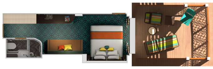 HE - Kajuta Havana Cabana s patiem 19 m² / vnější patio 7,5 m². Tropický styl, vstup do exkluzivní zóny Havana. 74 360 Kč 37 180 Kč za osobu