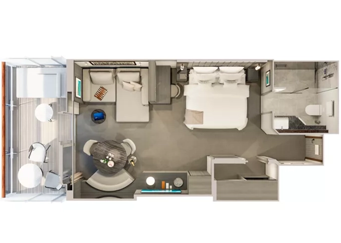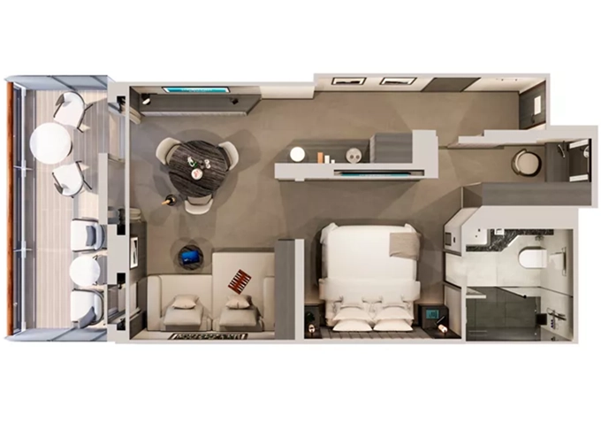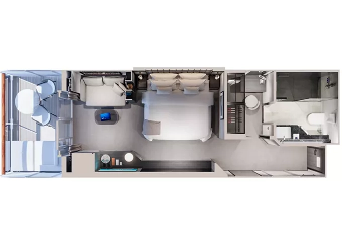 | Ocean Suites - Ocean Terrace Suite OT4 Suita 28 m² + terasa 7 m². 9/10. paluba střed. Maximální kapacita 2 dospělé osoby a 1 dítě do 17,99 let. | 149 244 Kč 149 244 Kč za osobu | ||