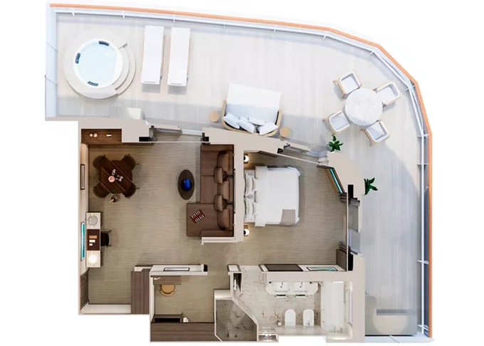 | Ocean Suites - Ocean Grand Terrace Suite Suita 28 m² + terasa 11 m². 6/7. paluba. Maximální kapacita 2 dospělé osoby a 1 dítě do 17,99 let. | 157 099 Kč 157 099 Kč za osobu | ||