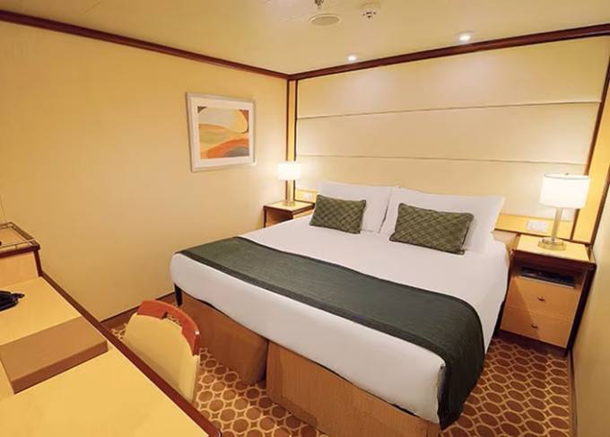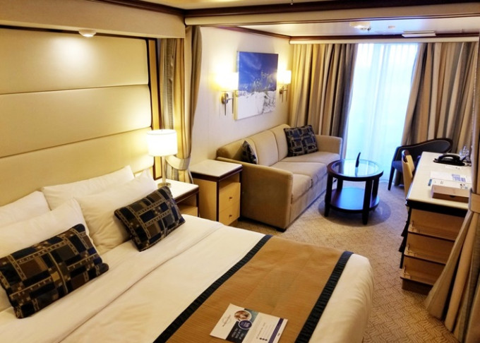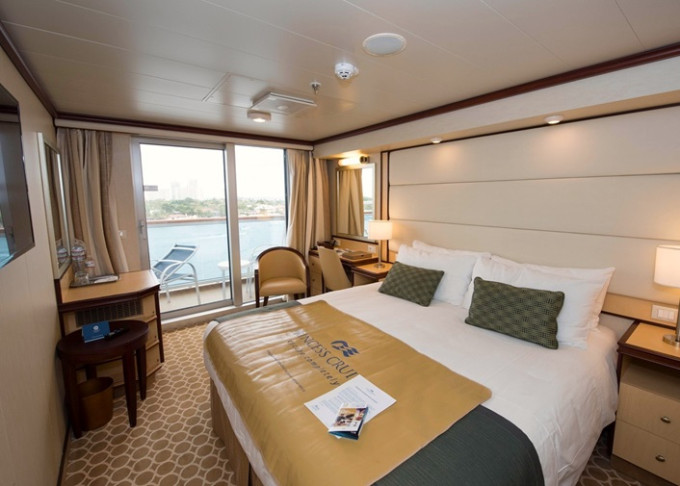 Standardní vybavení kajut: koupelna se sprchou a toaletou, 2 lůžka s možností konfigurace, úložné prostory, minibar, fén, TV, trezor. Balkony je vybaven malým stolkem a 2 židlemi či lehátky.