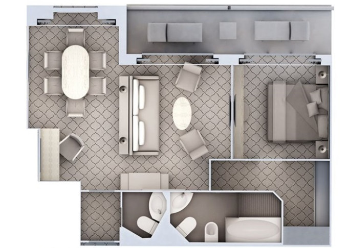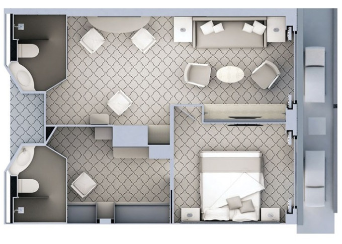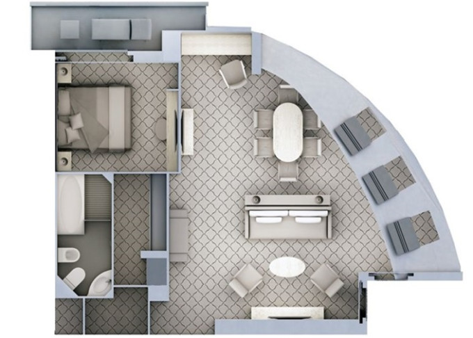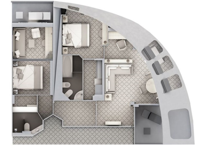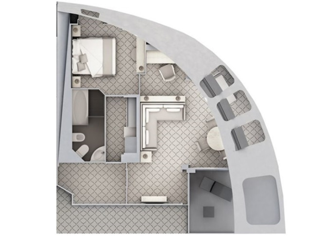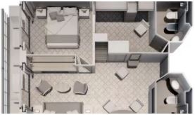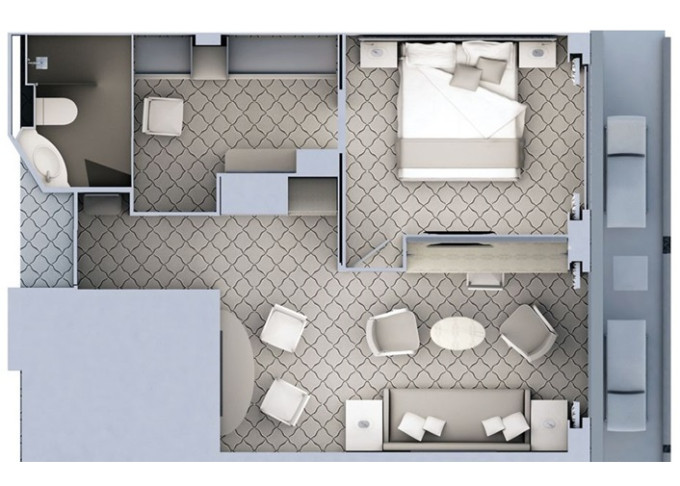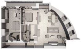 | R1 - Royal Suite 1 69 m² (včetně balkona), oddělená obývací časť a ložnice | 3 191 846 Kč 797 962 Kč za osobu | ||