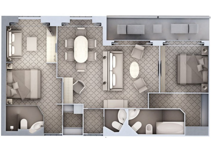 | R2 - Royal Suite 2 96 m² (včetně balkona), oddělená obývací časť a 2 ložnice, 2 koupelny | 2 353 987 Kč 2 353 987 Kč za osobu |