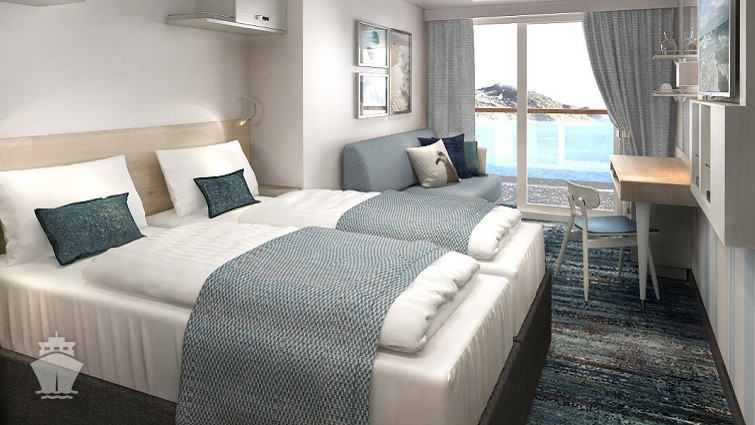| BAUR - Kajuta s balkonem PUR 17 m² + balkon 5-7 m². Max 4 osoby. Cenový model PUR. | 121 864 Kč 40 621 Kč za osobu | ||