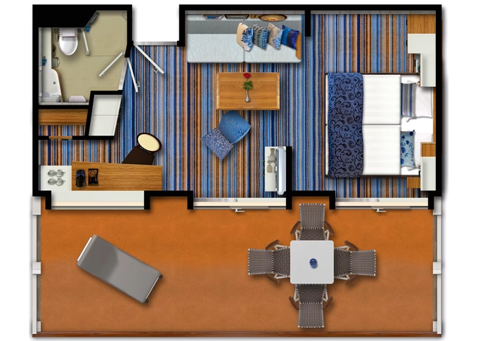 | JBAO - Junior Suite s balkonem 26 m² + balkon 8 m² se stolem. 10. paluba. Max 4 osoby. Výhody Junior Suite. | 311 130 Kč 103 710 Kč za osobu | ||