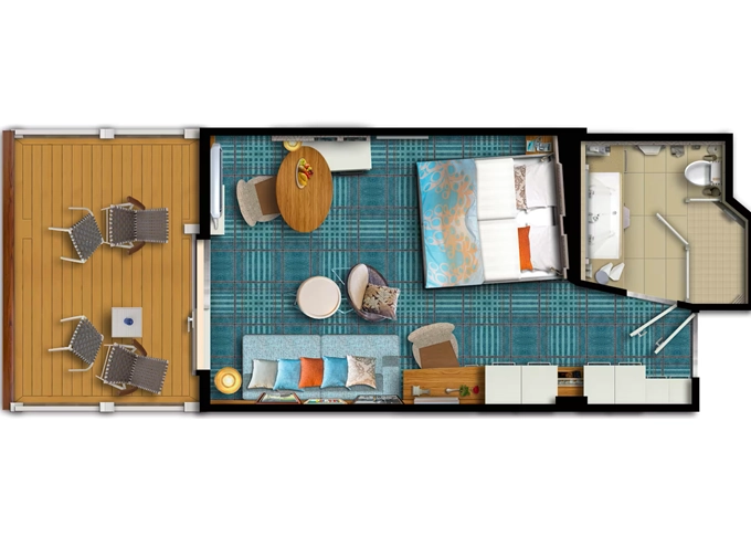| BADO - Kajuta s balkonem kat. D 17 m² + balkon 5 m². 7. paluba. Max 4 osoby. | 168 520 Kč 84 260 Kč za osobu | ||