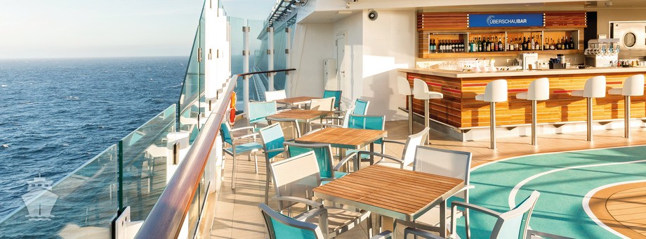 - Nápoje na palubě (nealkoholické nápoje, pivo, sekt, víno, koktejly, long drinky, lihoviny, kávové speciality) během celého dne v restauracích, barech a saloncích