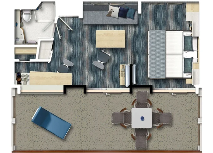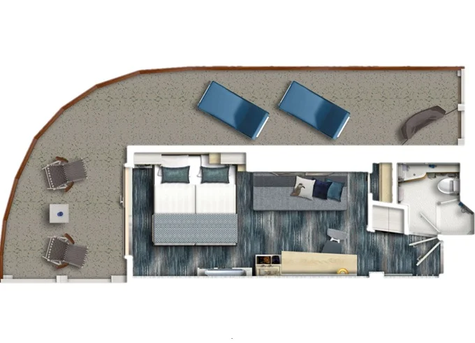 | JBAO - Junior Suite s balkonem 26 m² + balkon 7 m² se stolem. . paluba. Max 4 osoby. Výhody Junior Suite. | 179 491 Kč 89 746 Kč za osobu | ||
