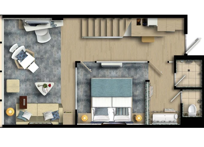 | SUHO - Himmel & Meer Suite 40 m² + prekrytá terasa 29 m² v patře se stolem, lehátky a s houpací sítí. Ložnice s obývací částí a jedálenským kútom. 14. paluba. Max 4 osoby. Výhody Suite. | 233 304 Kč 58 326 Kč za osobu | ||